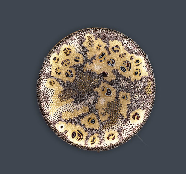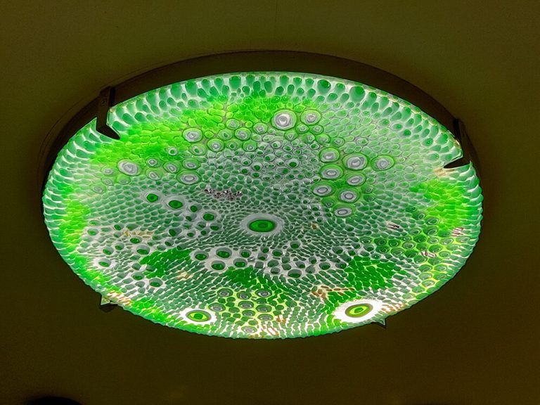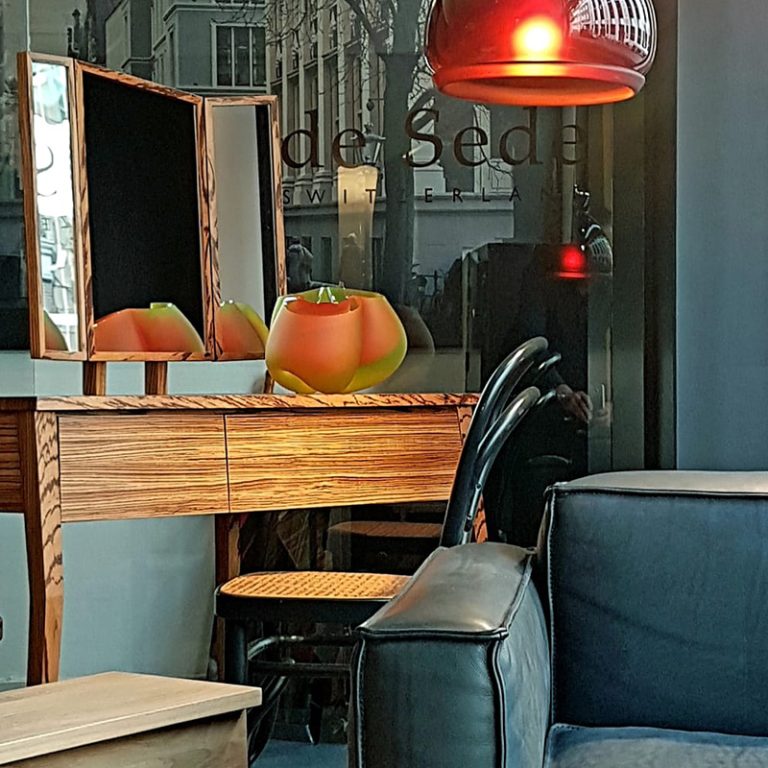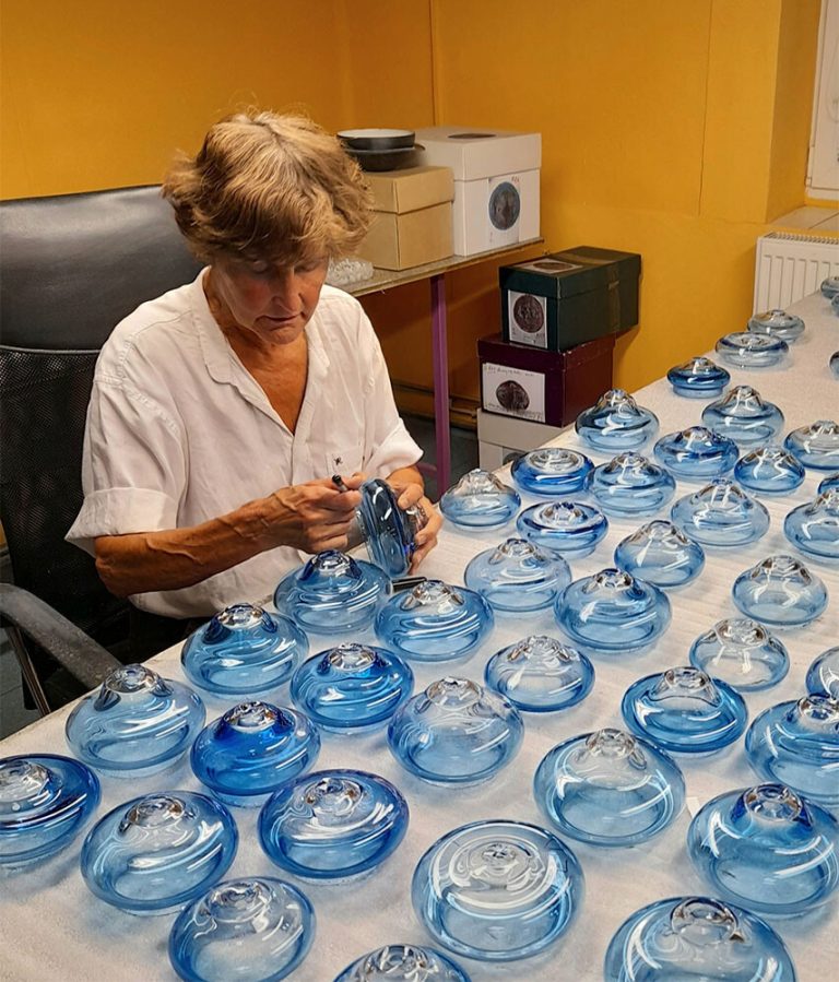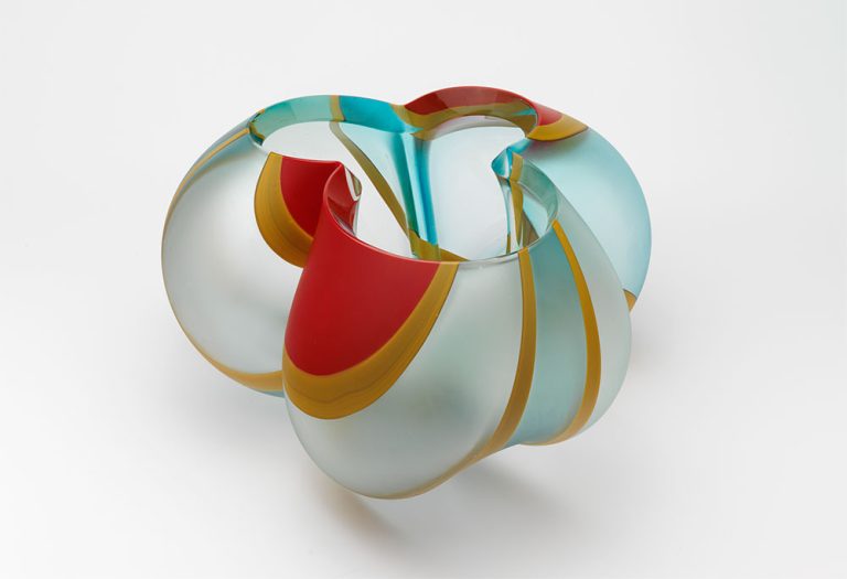 During a work period in Japan, I got in touch with the technique of glass fusing – the fusing of multiple layers of flat glass. Intrigued by the decorative power, I looked for a functional application of this technique.