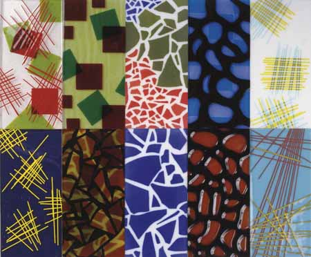 I designed compositions of flat panels, with patterns of melted, colored glass threads. The glass panels are placed as revolving doors in the wooden cabinet.