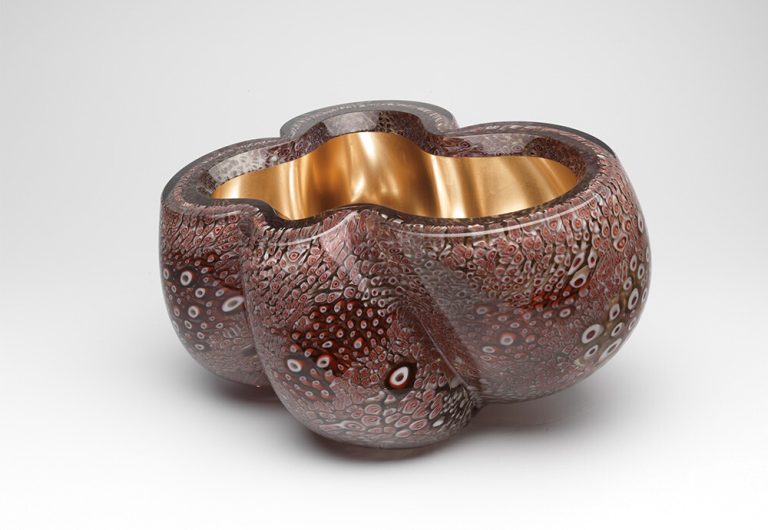 Kleuren liggen als dunne lagen over elkaar heen en vouwen zich in de uitgeblazen welvingen;