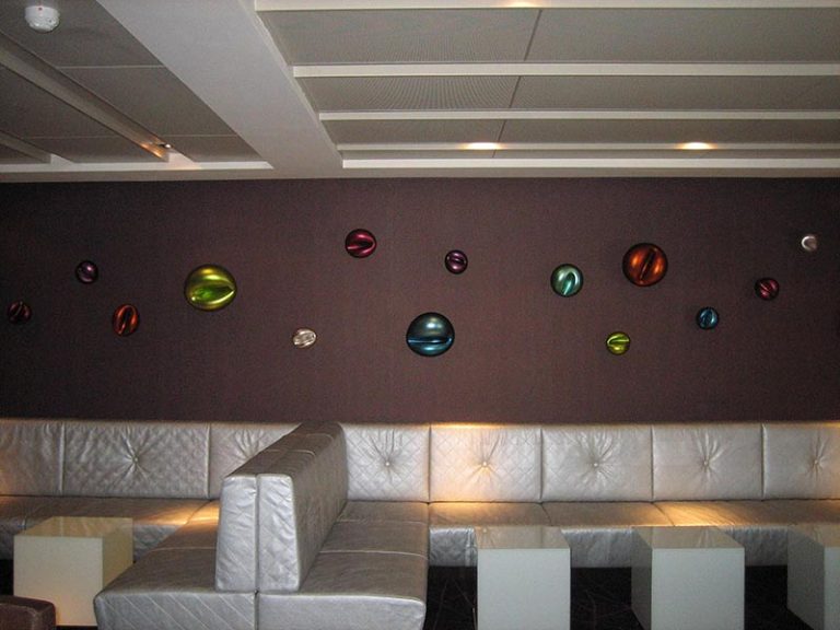 Barbara created compositions of coloured blown and hand formed glass objects in the atrium, library, restaurant and for the terminal lobby of three Norwegian Cruise ships.