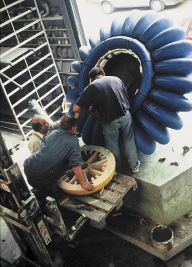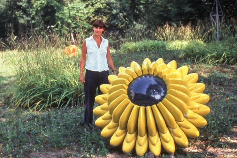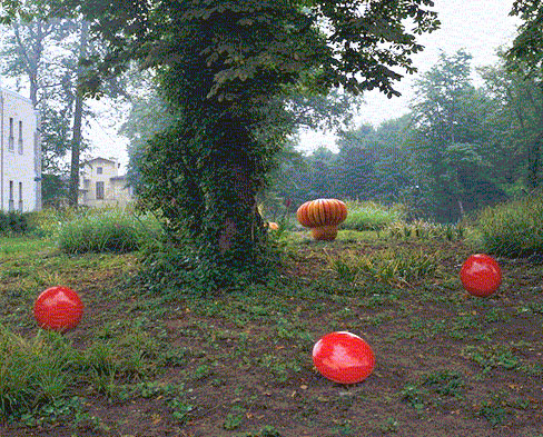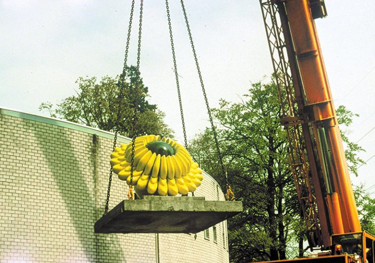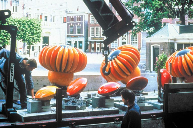 Buds were also the departure point for several monumental commissions, such as for the Municipality of Aalsmeer, location Legmeerdijk / Hornmeerpark (1997) and for the Nationale Politie, Hoofdstraat 54 in Driebergen (1999). In collaboration with architect Paul van Leeuwen and the Hague-based company Struktuur ’68, man-sized sculptures arose that were assembled from glazed segments.