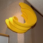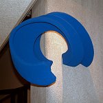 The artwork consists of 250 objects. These objects are placed so as to create an atmosphere of movement as they proceed from the atrium and wind their colorful way through the floors of the building utilizing the various concrete piers and pillars.